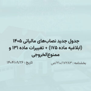 طبق بخشنامه شماره ۲۱۰/۱۷۲۸۳/ص سازمان امور مالیاتی مورخ ۱۴۰۴/۰۹/۲۶، نصابهای مالیاتی قانون مالیاتهای مستقیم بر اساس ماده ۱۷۵ تعدیل شدهاند.