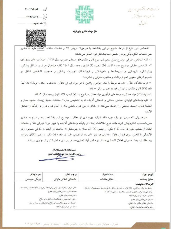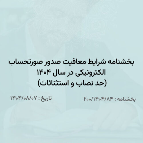 بخشنامه شماره ۲۰۰/۱۴۰۴/۸۴ به نقل از سازمان مالیاتی کشور :