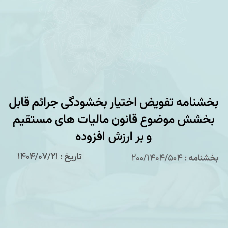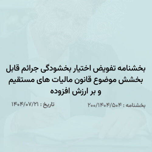 بخشنامه ۲۰۰/۱۴۰۴/۵۰۴ تفویض اختیار بخشودگی جرائم قابل بخشش موضوع قانون مالیات‌های مستقیم و مالیات بر ارزش افزوده